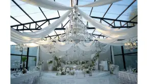 سالن عقد و محضر ازدواج آقای تشریفات واقع در مشهد، با ظرفیت پذیرایی از ۲۵۰ نفر، یکی از سالنهای محبوب و خاص برای برگزاری مراسم عقد بهشمار میآید. این مجموعه دارای دو فضای مجزای داخلی و خارجی است که با طراحی لاکچری و کلاسیک، محیطی چشمنواز و متفاوت ایجاد کردهاند. حضور پرسنل حرفهای و کاربلد نیز در کنار امکانات کامل، کیفیت برگزاری مراسم را تضمین میکند. این سالن بدون تردید گزینهای ایدهآل برای زوجهایی است که میخواهند مراسمی شیک و لاکچری داشته باشند.