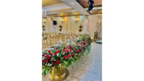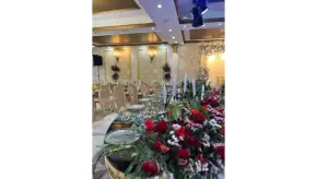 در تالار محرابی، جایگاه عروس و داماد با گلآرایی طبیعی و طراحی لوکس به نقطهی درخشان مراسم تبدیل میشود. ترکیب هنرمندانهی گلهای طبیعی در رنگهای هماهنگ با تم جشن، در کنار نورپردازی ملایم و شمعدانهای کریستالی، فضایی رؤیایی و عاشقانه خلق میکند. چینش دقیق گلها در اطراف جایگاه و استفاده از دکور طلایی و آینهای، جلوهای باشکوه به این بخش بخشیده و آن را به مرکز توجه مهمانان و قاب ماندگار عکسهای عروسی تبدیل میکند.
