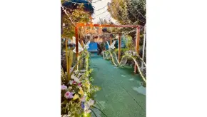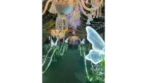 ورودی باشکوه تالار محرابی با گلآرایی طبیعی و طراحی هنرمندانه، صحنهای چشمنواز و رمانتیک برای خوشآمدگویی به مهمانان خلق کرده است. ترکیب گلهای رز قرمز و سفید، شمعهای طلایی، نورپردازی ملایم و المانهای تزئینی مانند پروانههای درخشان، مسیری رؤیایی بهسوی سالن اصلی ایجاد کرده که حس عشق و شکوه را از همان لحظه ورود تداعی میکند. طراحی متقارن و انتخاب رنگها بر اساس تم مراسم، جلوهای خاص به فضا بخشیده و این مسیر گلآراییشده را به یکی از محبوبترین بخشهای مراسم عروسی در تالار محرابی تبدیل کرده است. گلآرایی ورودی تالار محرابی نمادی از سلیقه و ظرافت است؛ جایی که هر قدم، آغاز زیبایی و شکوه جشن شما را روایت میکند.