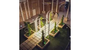 جایگاه عقد در فضای باز: در این تالار جایگاه عقدی با دکوراسیون شیک و چشمانداز زیبا در نظر گرفته شده است که لحظات عقد شما را به تجربهای رویایی تبدیل میکند.