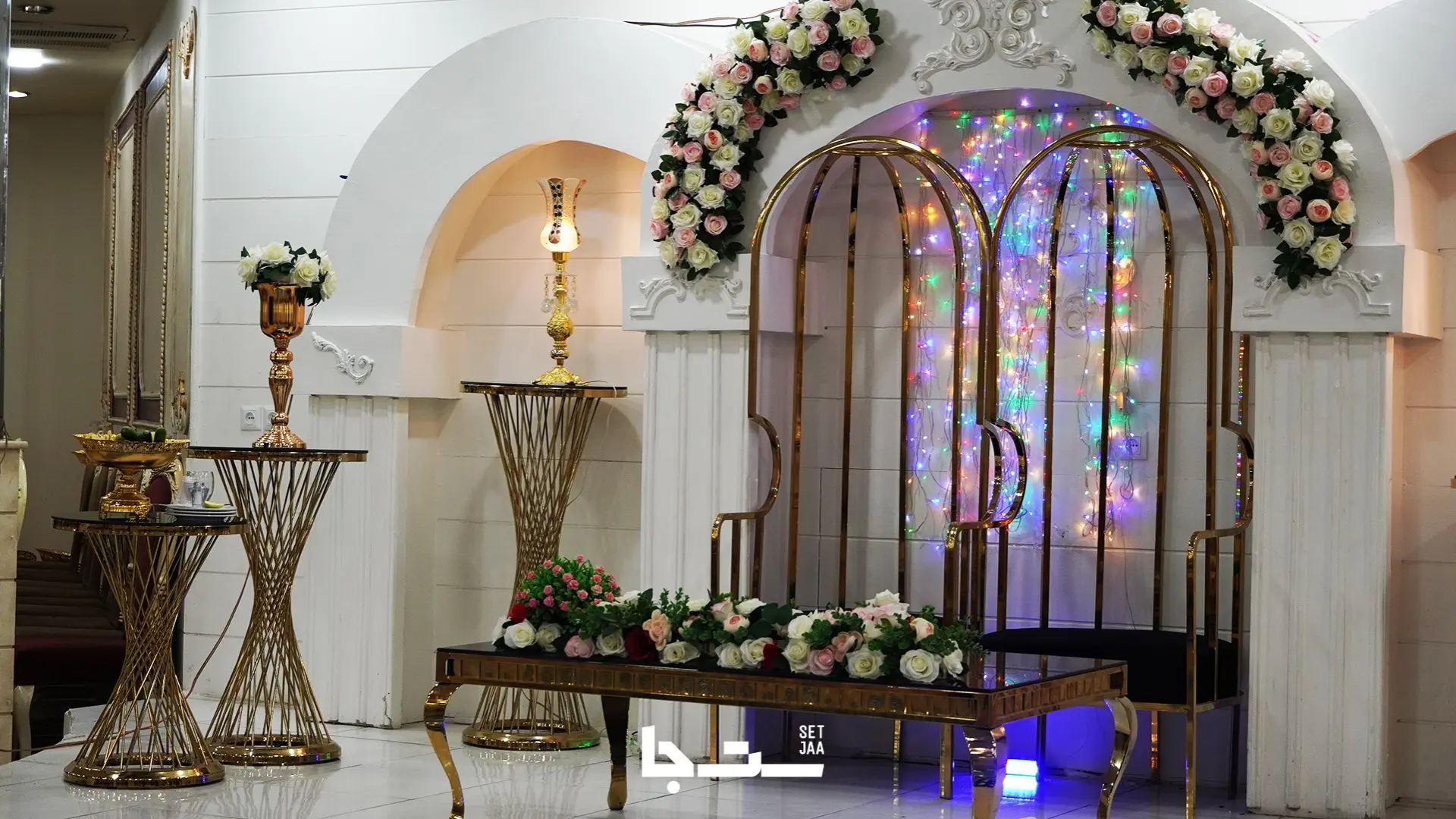گلآرایی جایگاه عروس، داماد و سالن بانوان: در این تالار محیط مراسم با گلآرایی حرفهای زیباسازی میشود.