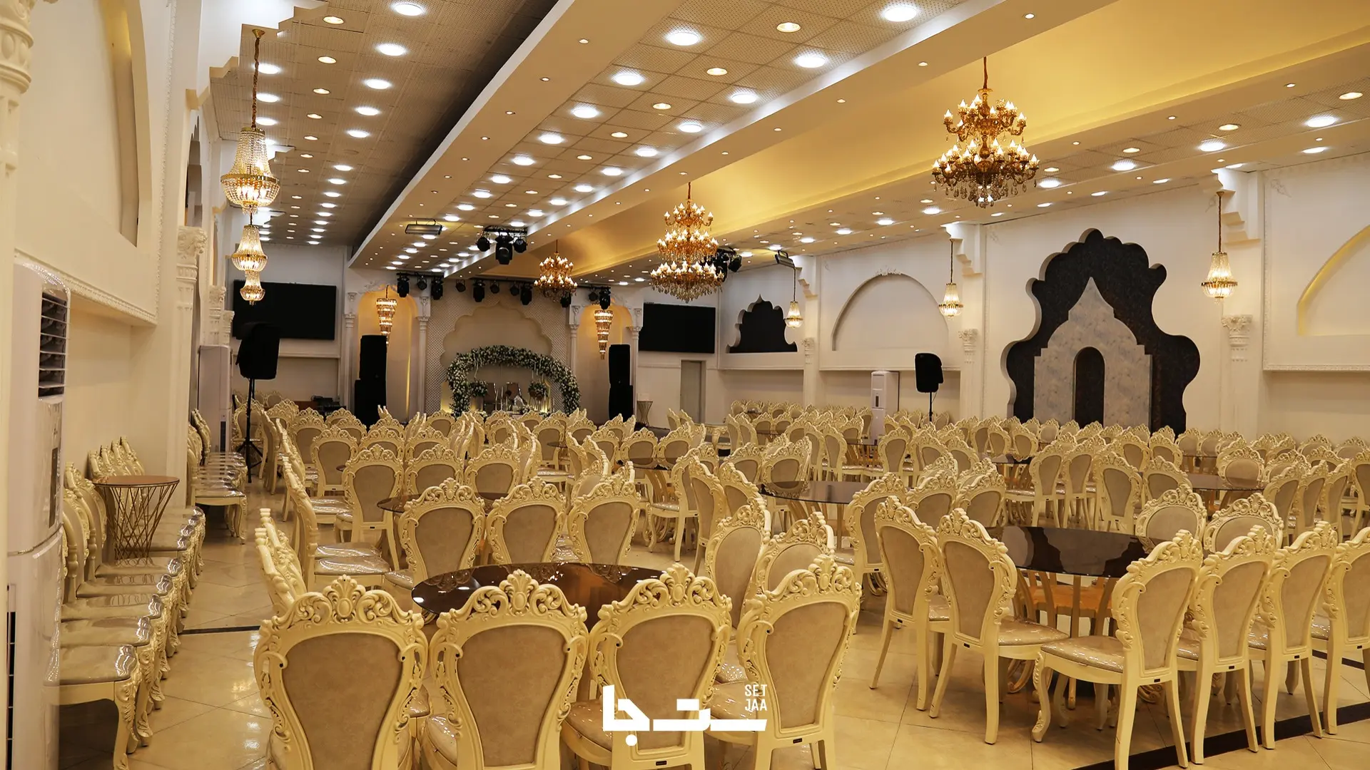 تالار عمان رشت با طراحی باشکوه و دکوراسیون طلایی، یکی از لوکسترین تالارهای عروسی گیلان محسوب میشود. سالنهای این مجموعه با سقفهای بلند، لوسترهای کریستالی و نورپردازی حرفهای طراحی شدهاند تا جلوهای باشکوه و مجلل به مراسم شما ببخشند. چیدمان منظم میزها و صندلیهای کلاسیک، رنگبندی روشن و هارمونی دقیق بین دکور و گلآرایی، فضایی گرم و دلنشین برای پذیرایی از مهمانان ایجاد کرده است. ترکیب طراحی اروپایی با جزئیات ایرانی در هر گوشه از سالن، نشان از سلیقه خاص مدیریت مجموعه دارد. اگر بهدنبال تالار مجلل در رشت با فضایی بینظیر برای برگزاری عروسی، نامزدی یا ولیمه هستید، سالن تالار عمان با امکانات کامل و چیدمانی منحصربهفرد، گزینهای ایدهآل برای شماست.
