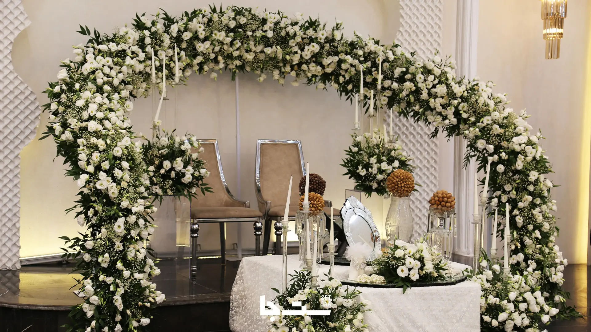 💐 گلآرایی لوکس جایگاه عروس و داماد تالار عمان رشت