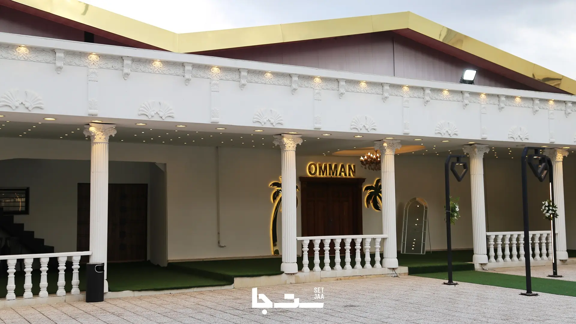 ورودی مجلل تالار عمان رشت با طراحی الهامگرفته از معماری کلاسیک و نورپردازی طلایی، جلوهای چشمنواز و خاص به مراسم شما میبخشد. ترکیب ستونهای سفید، لوستر مرکزی، آینه خوشآمدگویی و دیزاین نخل طلایی، حس شکوه و اصالت را از همان لحظه ورود منتقل میکند. این ورودی لوکس با مسیر سبز و المانهای تزئینی خاص، بهترین محل برای فیلمبرداری و عکاسی زوجهای جوان است. اگر به دنبال تالار عروسی لوکس در رشت با ورودی مجلل و طراحی خاص هستید، مجموعهی عمان یکی از زیباترین گزینههای شمال ایران است.