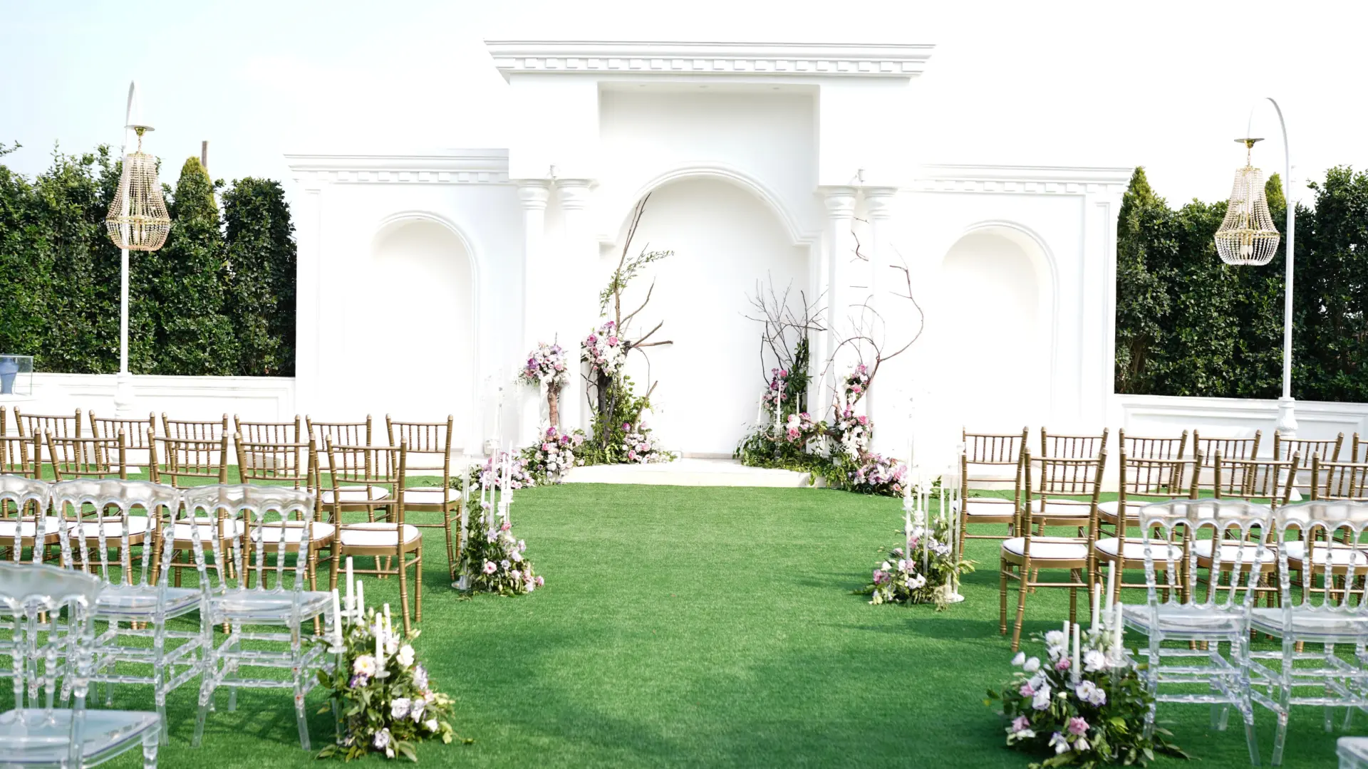 گلآرایی فضای باز و جایگاه عقد آریایی در قصر سفید