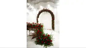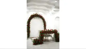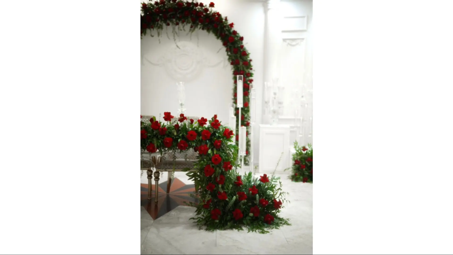 گلآرایی جایگاه عروس و داماد در قصر سفید یکی از خاصترین طراحیها برای مراسم عقد و عروسی است. در این نمونه گلآرایی تالار لوکس قصر سفید، از رزهای قرمز طبیعی برای دکوراسیون جایگاه عقد استفاده شده که جلوهای باشکوه و لاکچری به سالن عروسی میدهد. این گلآرایی حرفهای نه تنها فضای سالن را زیباتر میکند، بلکه بهترین پسزمینه برای عکاسی و فیلمبرداری مراسم است. نکته مهم این است که گلآرایی جایگاه عروس و داماد در قصر سفید کاملاً سفارشی بوده و رنگ و دیزاین آن به سلیقه مشتری انجام میشود. به همین دلیل هر زوج میتوانند گلآرایی جایگاه سفارشی خود را داشته باشند و مراسمی منحصربهفرد برگزار کنند. انتخاب قصر سفید برای گلآرایی مراسم عروسی به معنای داشتن یک تیم متخصص در طراحی و اجرای جدیدترین سبکهاست. اگر به دنبال یک تالار پذیرایی لوکس با امکان گلآرایی خاص و حرفهای هستید، قصر سفید انتخابی بینقص برای شماست.