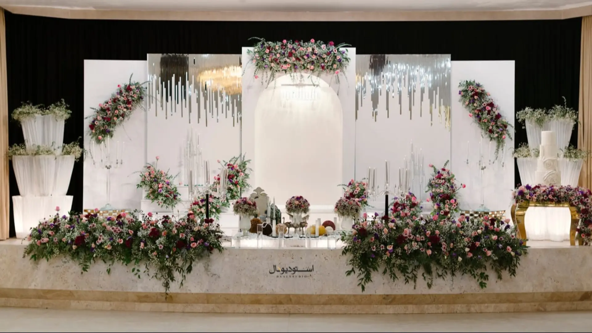 گلآرایی مینیمال و شیک جایگاه در تالار قصر فرمانیه مشهد