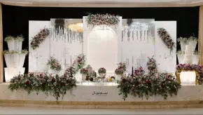 گلآرایی جایگاه عروس و داماد در تالار فرمانیه مشهد