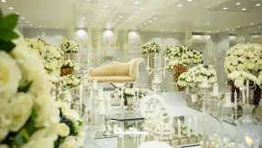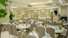 در تالار بزرگ پردیس، مراسم عروسی با دکوراسیون فاخر، گلآراییهای زیبا و نورپردازی حرفهای برگزار شده است. تیم حرفهای تالار با دقت به جزئیات، مراسمی بینقص و بهیادماندنی برای عروس و داماد رقم زده است. تالار بزرگ پردیس با دو سالن مجزا، سالنهای عقد و روف گاردن با امکانات منحصر به فرد، فضایی مجلل و آسوده برای مراسم شما فراهم میکند. پارکینگ اختصاصی این تالار نیز آسایش مهمانان شما را تضمین میکند.