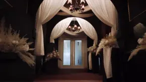 تالار پردیس مشهد با طراحی داخلی منحصربهفرد در محدوده جاده شاندیز، جلوهای کامل از ترکیب نور، گلآرایی و چیدمان حرفهای را در فضای سالن به نمایش گذاشته است. از لحظه ورود تا جایگاه اصلی عروس و داماد، هماهنگی دقیق بین رنگ، نور و دکور، حس لوکس بودن مراسم را به مهمانان منتقل میکند. ورودی سالن با مسیر نورانی و دیزاین تشریفاتی، آغازگر فضایی مدرن است که به تدریج به گلآرایی جایگاه ختم میشود. در بخش میانی سالن، استفاده از المانهای سفید و طلایی، کف براق، و نورپردازی خطی، ترکیبی چشمنواز برای مراسمهای بزرگ و رسمی ایجاد کرده است. گلآراییهای اطراف مسیر با گلهای طبیعی، باکسهای نورانی و ترکیب با بخار سبک، فضای سالن را از دیگر تالارهای عروسی مشهد متمایز کرده است. در انتهای مسیر، جایگاه عروس و داماد با طراحی متقارن، بکگراند نورانی و ترکیب گلهای رز، لیلیوم و ارکیده، مرکز توجه سالن را تشکیل میدهد. اجرای هماهنگ نور لیزری و افکتهای تصویری در پسزمینه باعث شده فیلمبرداری و عکاسی در تالار پذیرایی پردیس شاندیز جلوهای حرفهای و خیرهکننده داشته باشد. دیزاین داخلی تالار پردیس مشهد نتیجهی کار تیمی تخصصی در حوزه نورپردازی، گلآرایی و طراحی دکور است؛ فضایی که با استانداردهای مدرن و سلیقهی ایرانی ترکیب شده و یکی از کاملترین نمونههای اجرای سالن عروسی در شهر مشهد را به نمایش میگذارد.